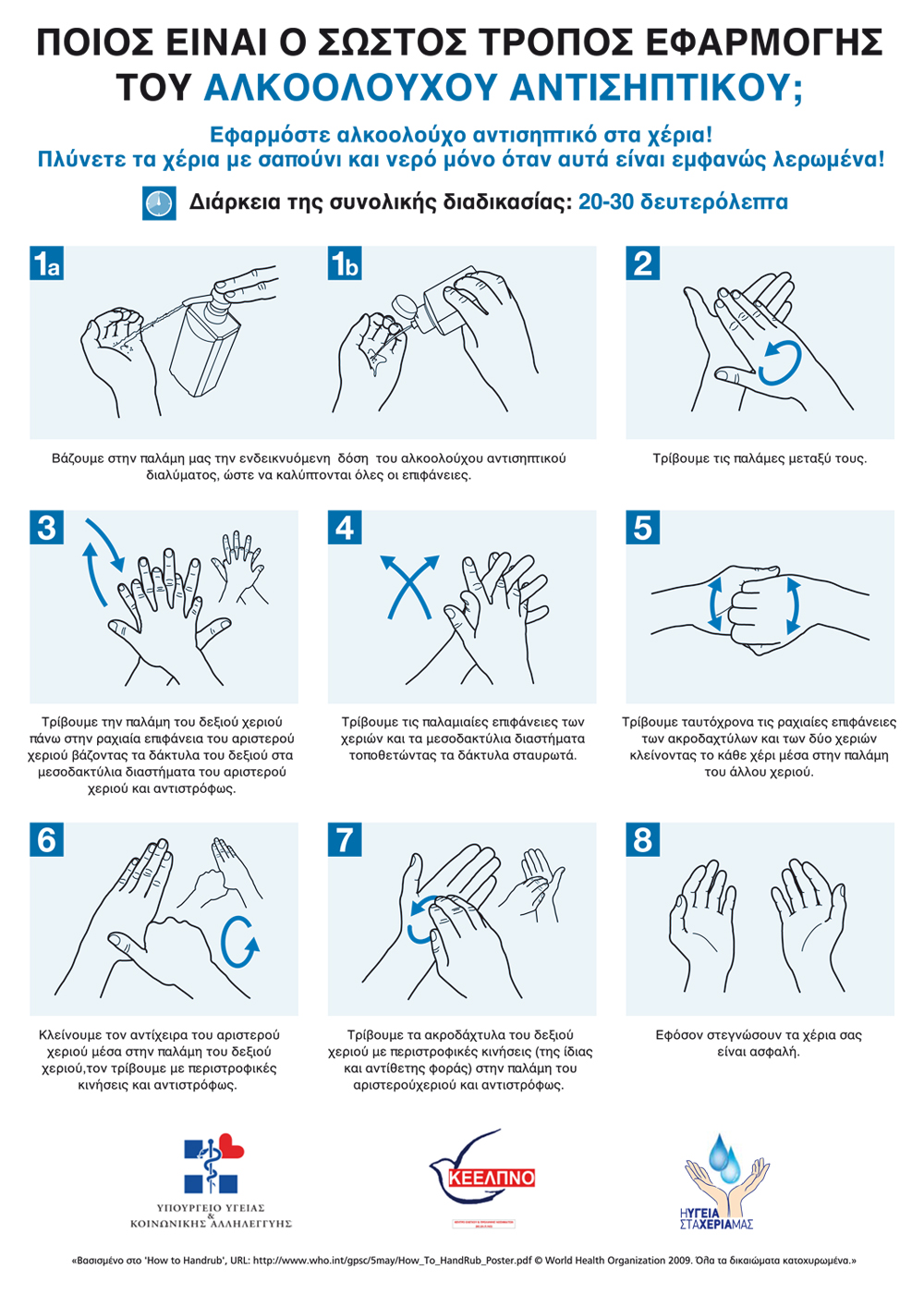 Δείτε παρακάτω τον σωστό τρόπο εφαρμογής του αλκοολούχου αντισηπτικού σύμφωνα με τις οδηγίες του ΕΟΔΥ.